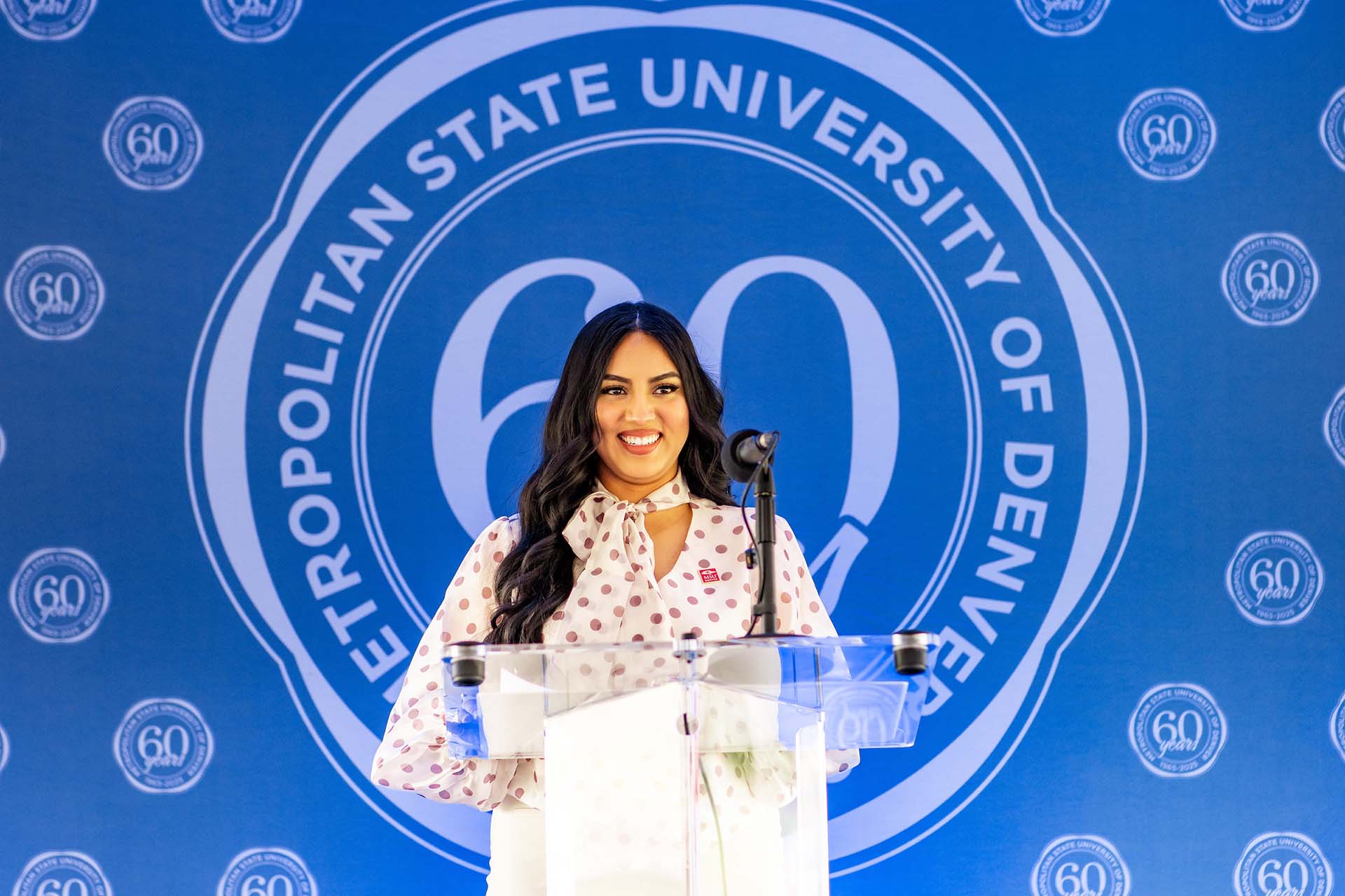 MSU Denver student Nicole Mendoza is also the first in her family to attend college. Mendoza, who expects to graduate in December with a degree in Cybersecurity, said on-campus housing and the new home for MSU Denver’s Classroom to Career Hub, will benefit future students. Mendoza said that, like many first-generation students, she initially had trouble balancing a full-time job, family obligations and studies. When her anxiety escalated “I had to pause school,” Mendoza said. “But I never gave up on education and MSU Denver never gave up on me.”