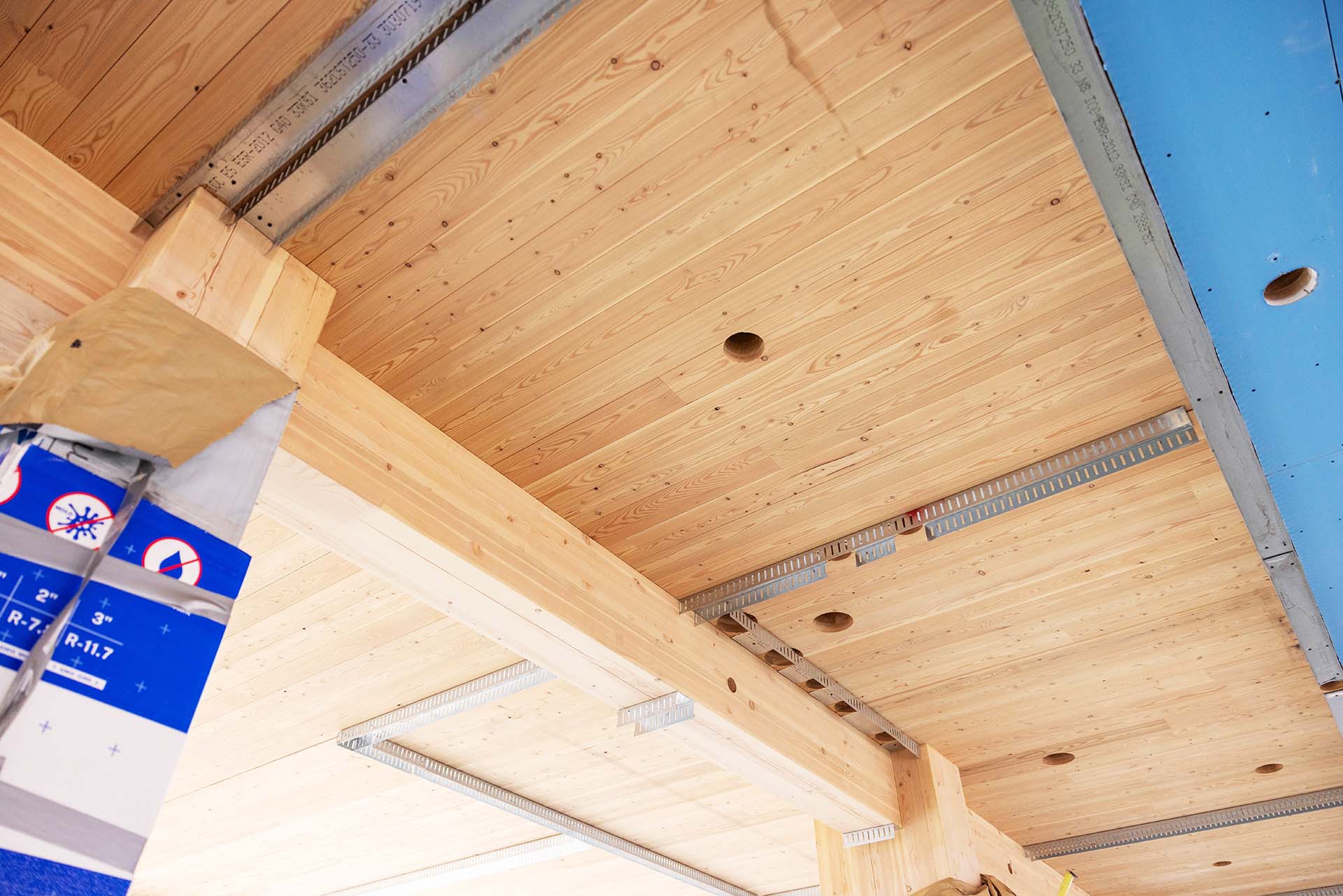 A detail shot of the mass timber, which came from Spokane, Washington. Photo by Amanda Schwengel